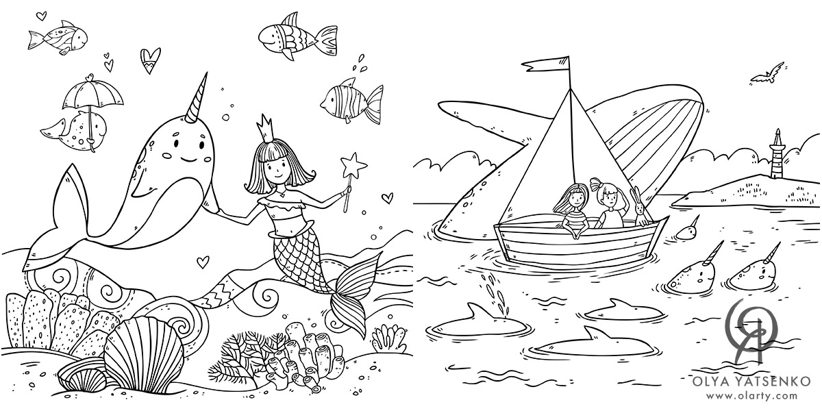 Narwhal, Mermaid, Unicorn and Other Sea Creatures Coloring Calendar